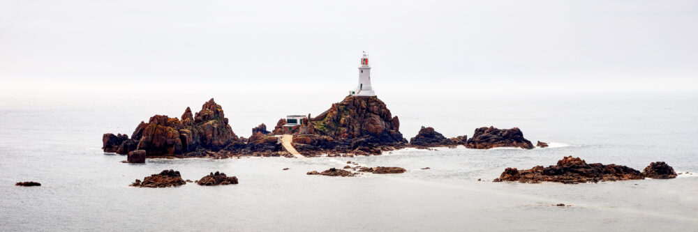 Panorama Of Corbiere Lighthouse With Flat Cloud, Jersey Channel Islands