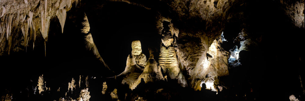 Panorama Image Of Three Large Speleothem Formations, Carlsbad Caverns National Park, New Mexico