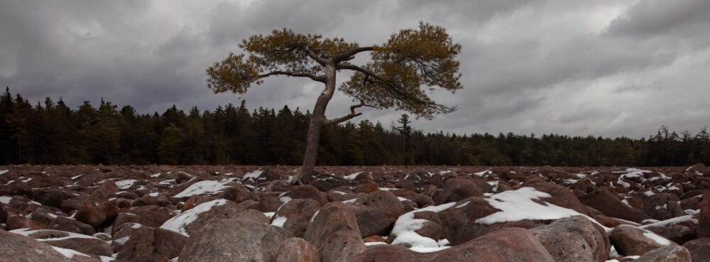 The Lone Tree, Surrounded By Snow Covered Rocks At The Boulder Field, Hickory Run State Park, PA - Panorama Crop