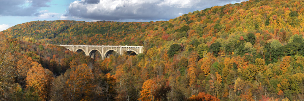 At 150 feet tall and around 1,600 feet long this is a concrete arch structure. It opened in 1915, built for the Delaware, Lackawanna and Western Railroad Company. The aim was improve the rail link between Scranton and Hallstead. Currently the road travels north/south through one of the arches. So you can get a close up and personal view as you drive through if you want. A better view is from an overlook located on Zicks Hill Road which provides a more scenic aspect.